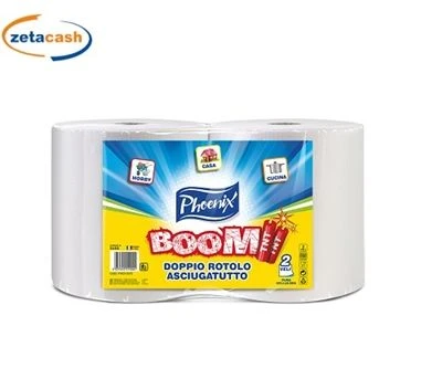 Confezione 2 rotoli asciugatutto Phoenix Boom, 2 veli in pura cellulosa.