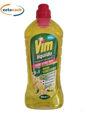 Vim liquido sgrassante al limone, per pavimenti e superfici, igienizzante, asciugatura rapida, senza riscaquo, profumo intenso, 1000ml.